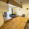 ✨ Apartamentul impresionează prin finisajele ultralux și atenția la detalii. Mobilier din lemn masiv, realizat la comandă – parchet, masă, paturi, spații de depozitare și uși interioare.