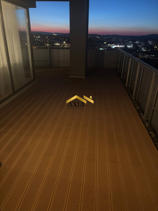 Unul dintre principalele avantaje ale proprietății este terasa impresionantă de 105 mp, accesibilă din fiecare dormitor, precum și din living. Din acest spațiu se deschide o vedere panoramică spectaculoasă asupra Clujului.